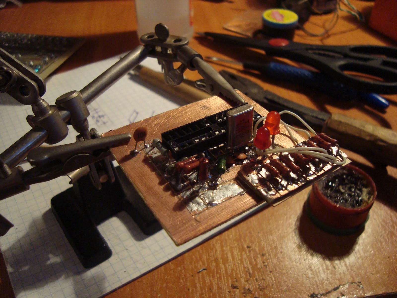 Я решил собрать схему печатным монтажом, но с помощью разделения узлов связи деталей на площадки:
